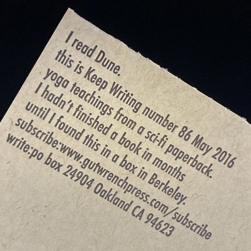 I remember posters in my middle school classroom for the movie Dune. And yet, I had not read it until I found a battered copy in a free library in Oakland. I was hooked.