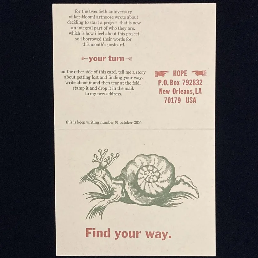 If you want a card like this mailed to you every month, you can subscribe to Keep Writing here.