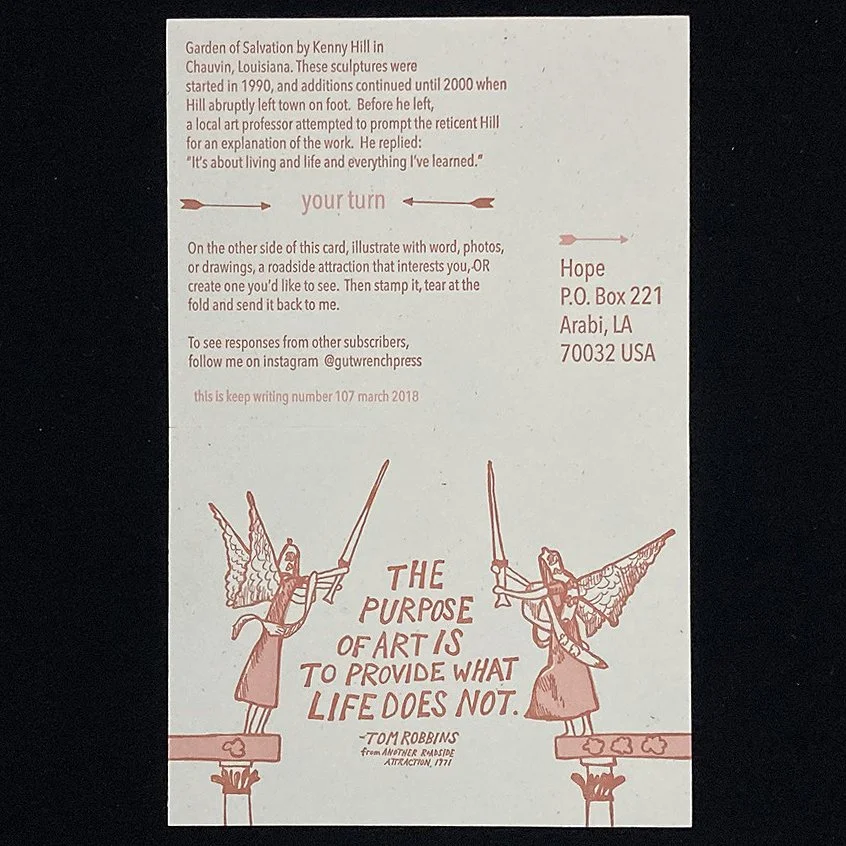 If you want a card like this mailed to you every month, you can subscribe to Keep Writing here.
