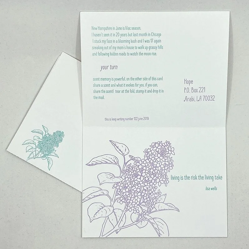 If you want a card like this mailed to you every month, you can subscribe to Keep Writing here.