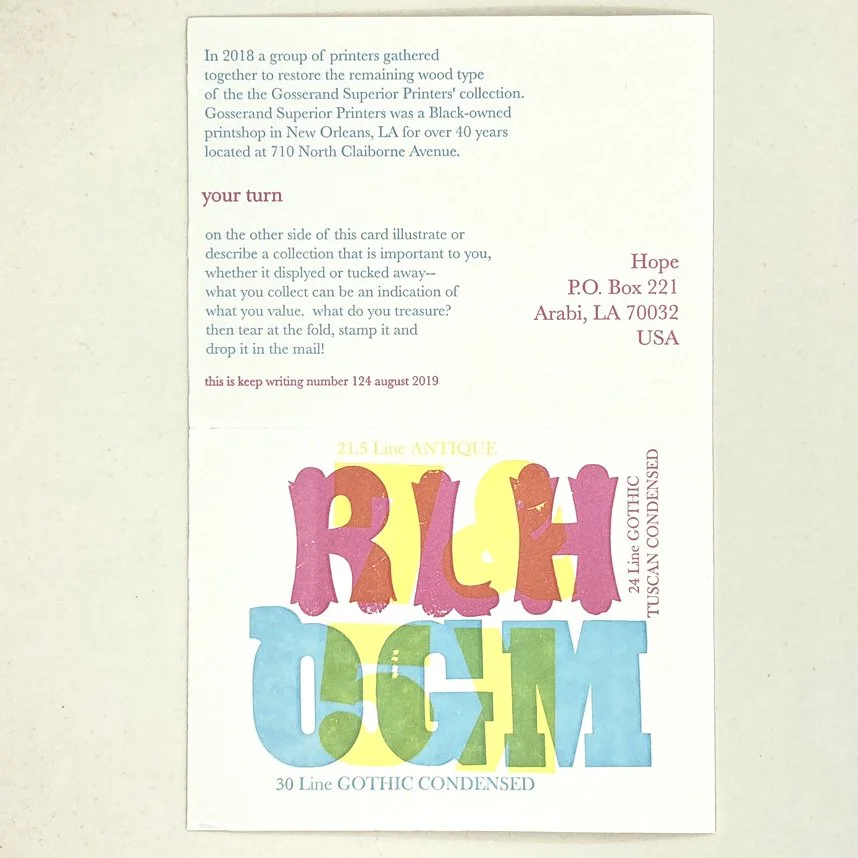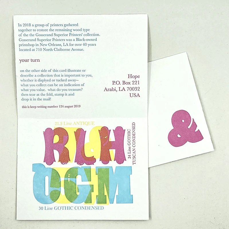 The type was the remains of a collection from Gosserand Superior Printers, A Black-owned printshop in New Orleans who printed posters for music events.