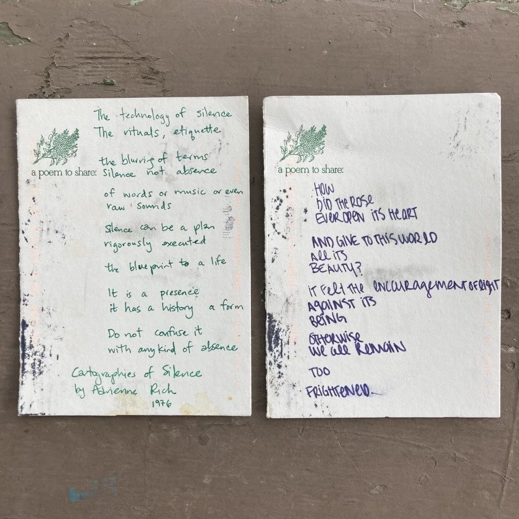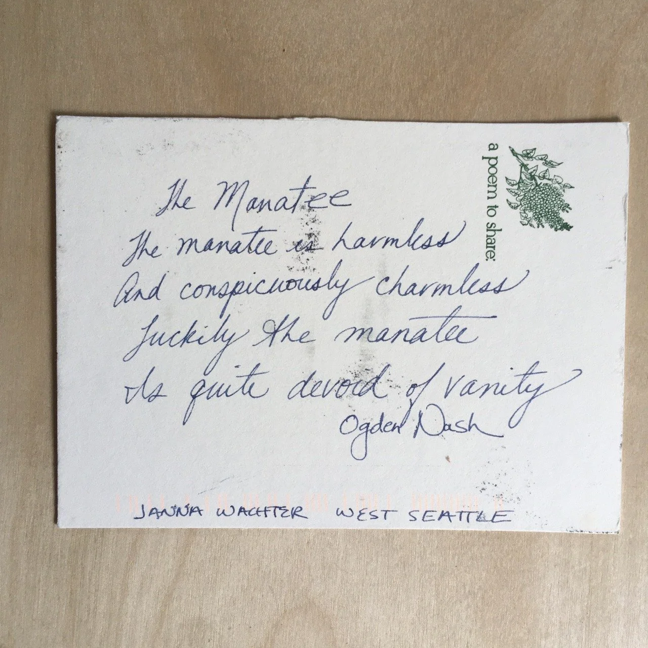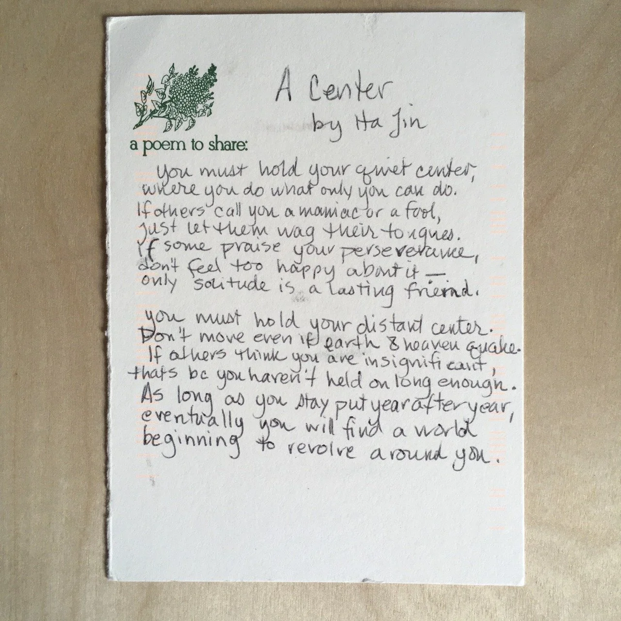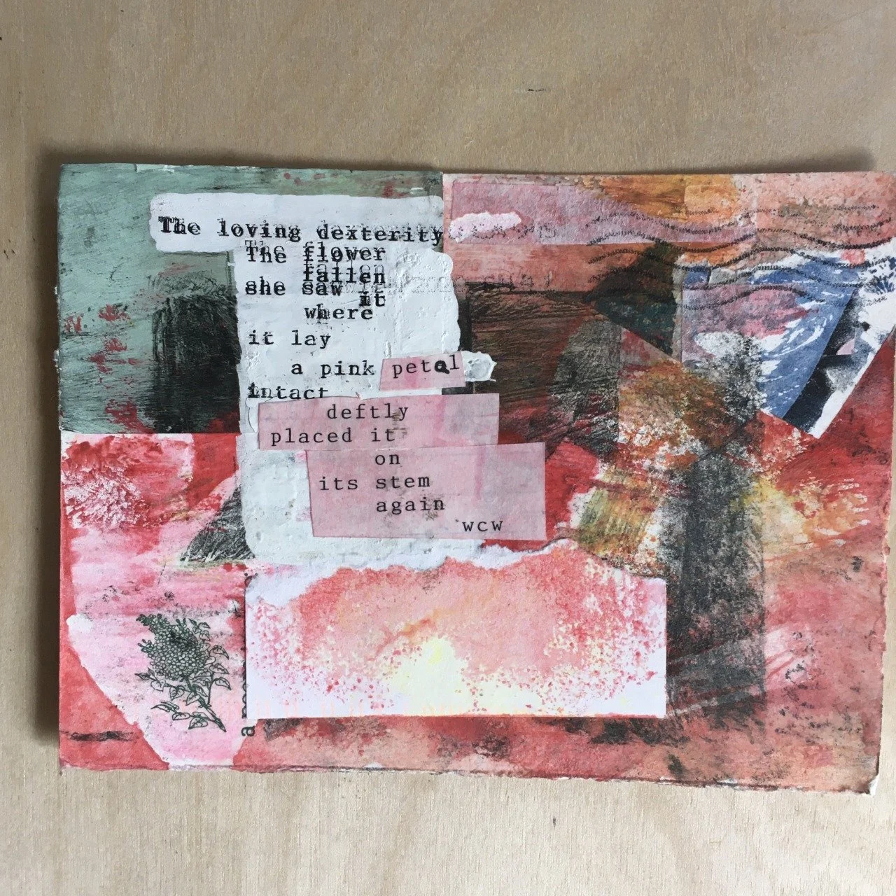 I moved to Portland, COVID shut everything down, and we all tried to adjust. The exquisite corpse poem was on hold, as I was seeking studio space for printing, and awaiting a post office box. This is the first card printed on my tabletop press, that I brought with me, in my new studio space in Portland.