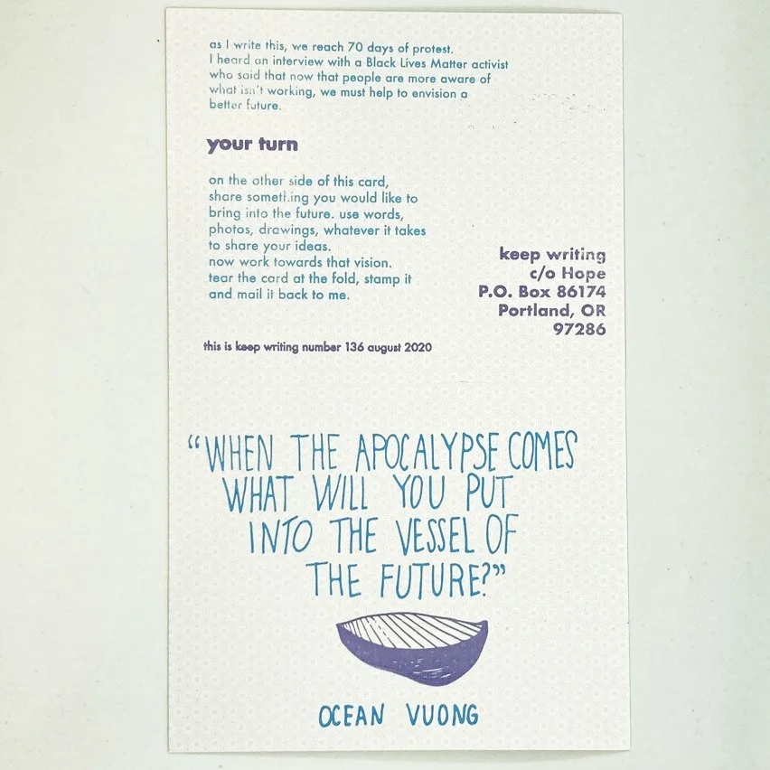 If you want a card like this mailed to you every month, you can subscribe to Keep Writing here.
