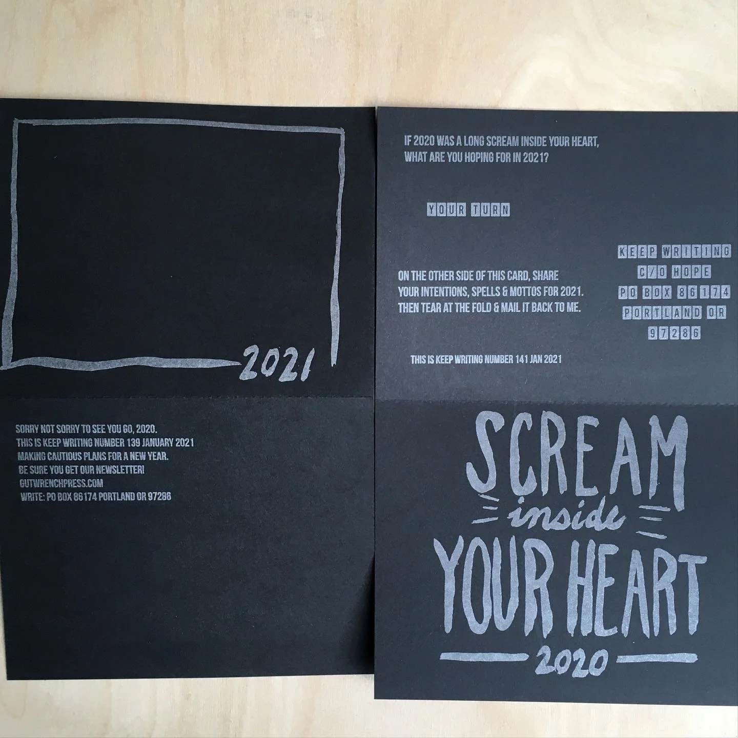 Black paper poses challenges for responses, but it looks so lovely, and was so fitting for this goodbye to 2020.