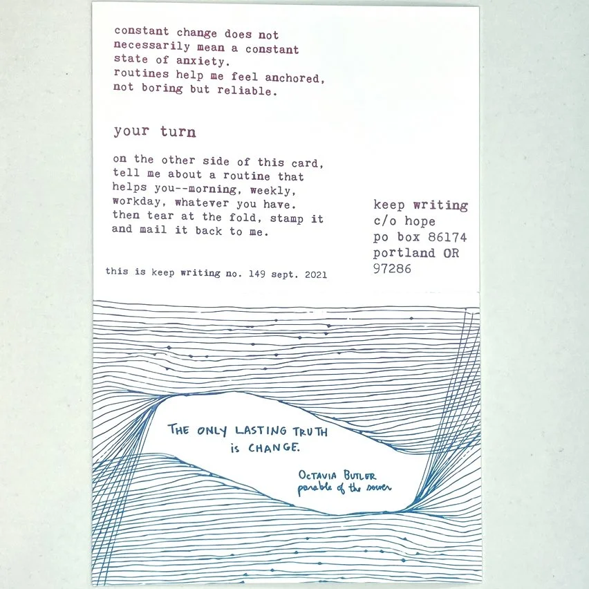 If you want a card like this mailed to you every month, you can subscribe to Keep Writing here.