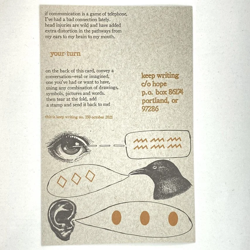 If you want a card like this mailed to you every month, you can subscribe to Keep Writing here.