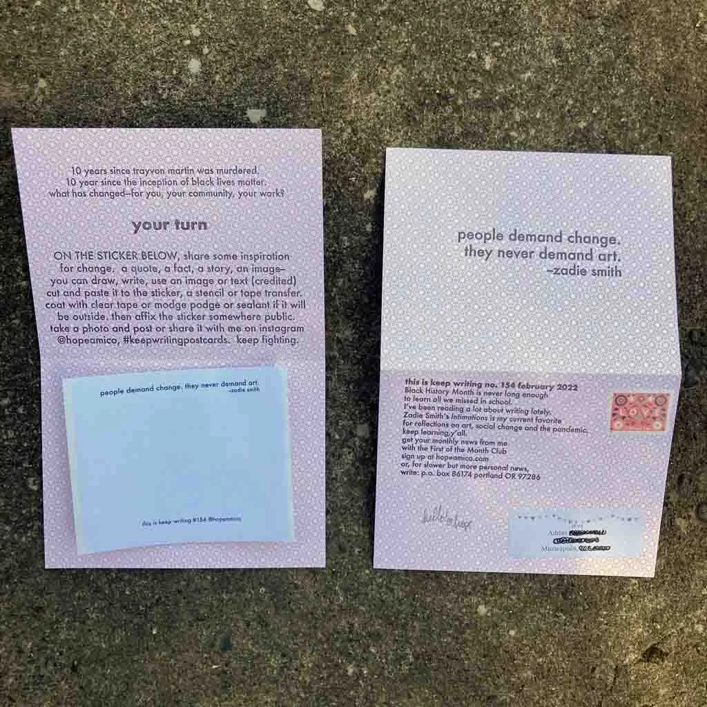If you want a card like this mailed to you every month, you can subscribe to Keep Writing here.