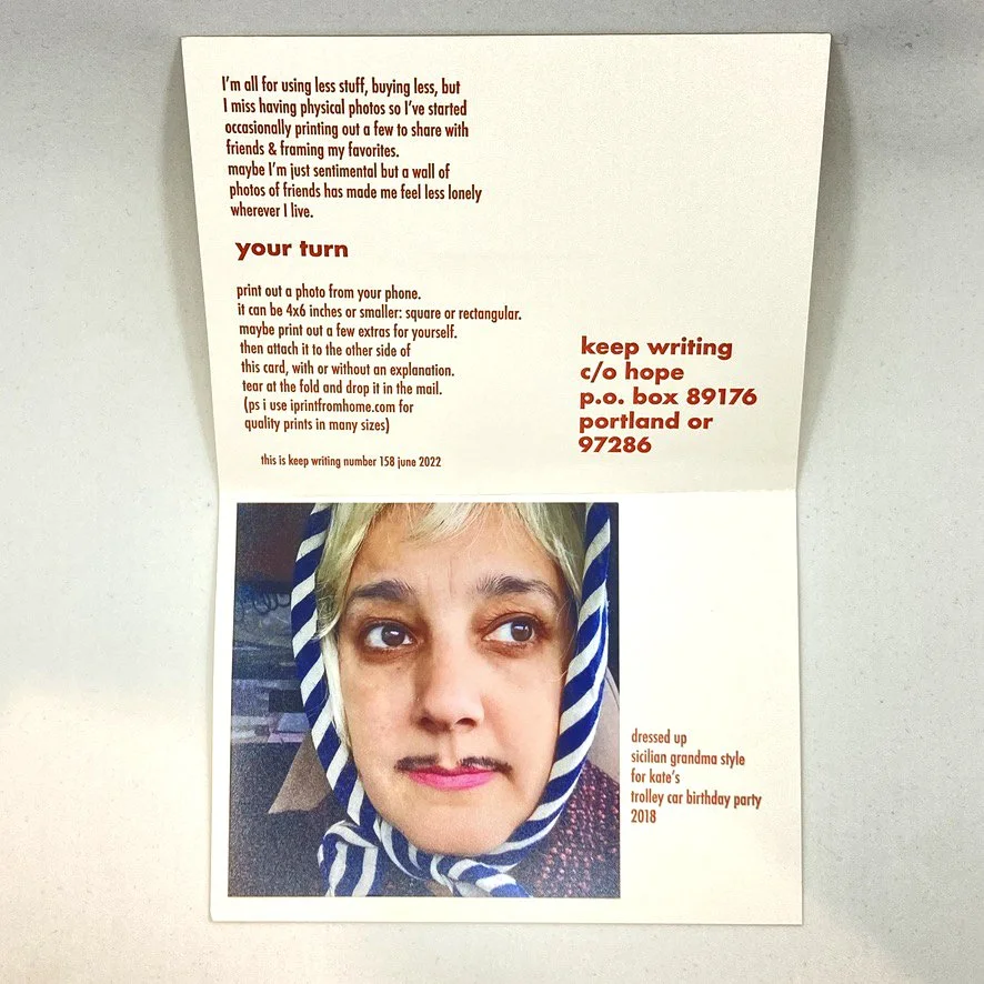 If you want a card like this mailed to you every month, you can subscribe to Keep Writing here.