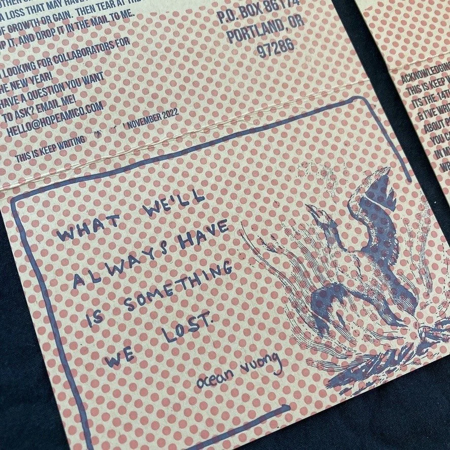 If you want a card like this mailed to you every month, you can subscribe to Keep Writing here.