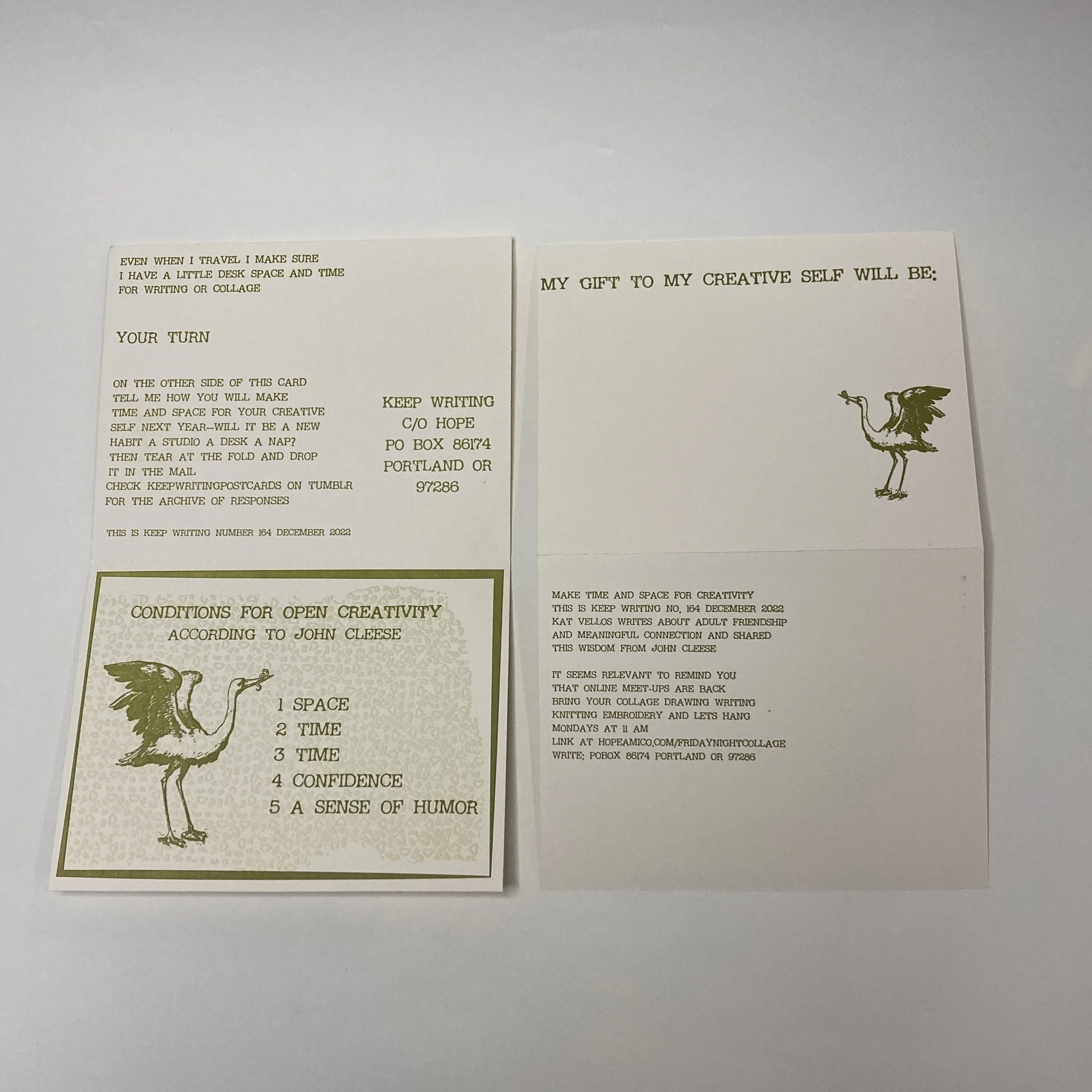 If you want a card like this mailed to you every month, you can subscribe to Keep Writing here.