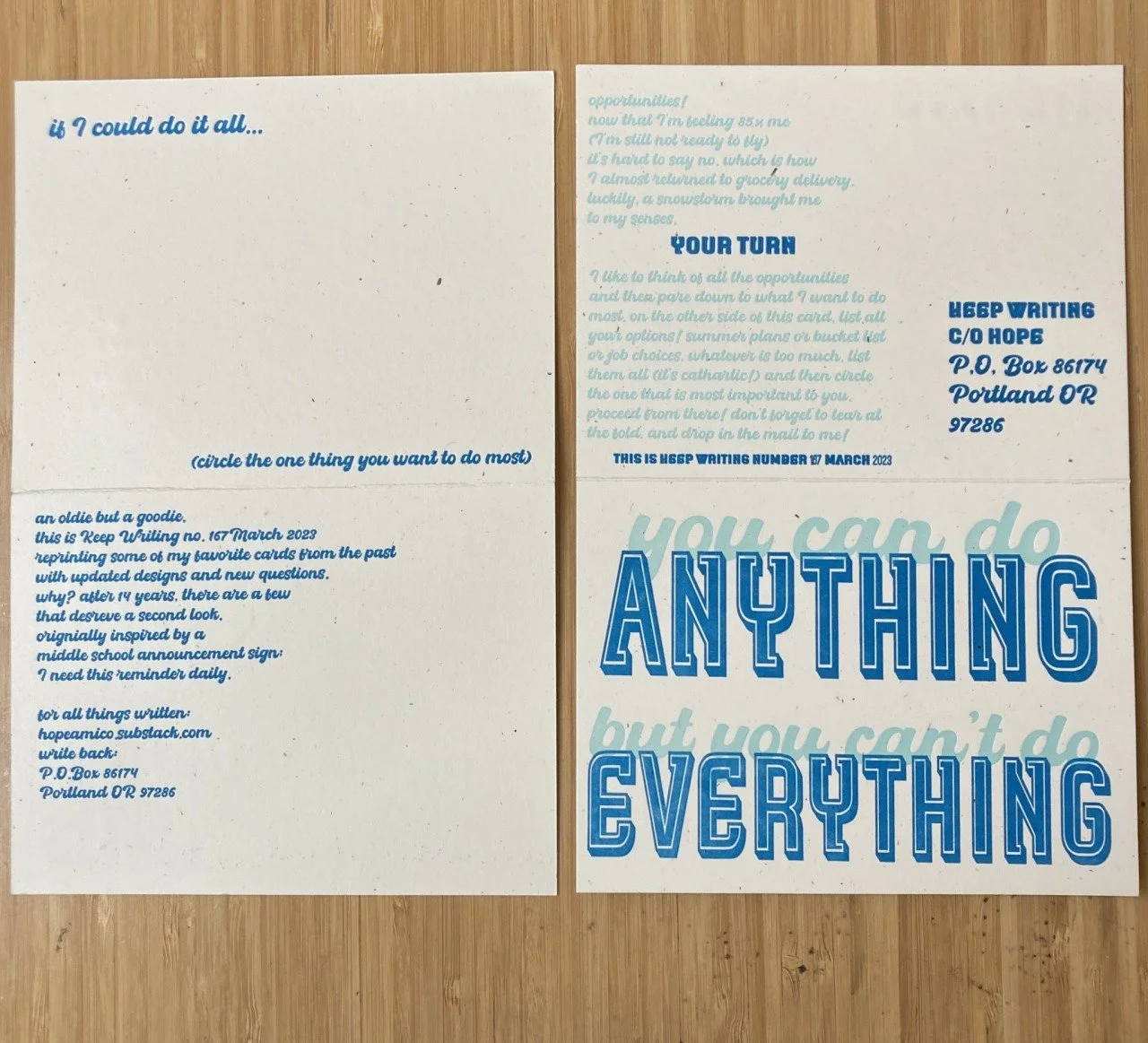 If you want a card like this mailed to you every month, you can subscribe to Keep Writing here.