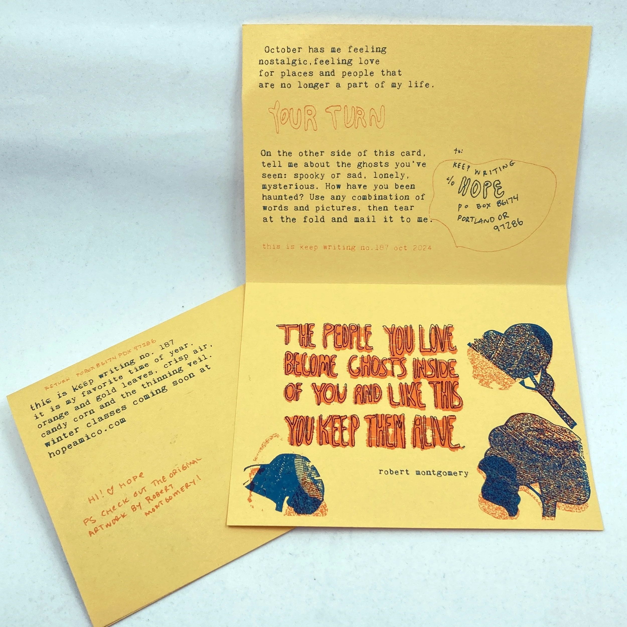 If you want a card like this mailed to you every month, you can subscribe to Keep Writing here.