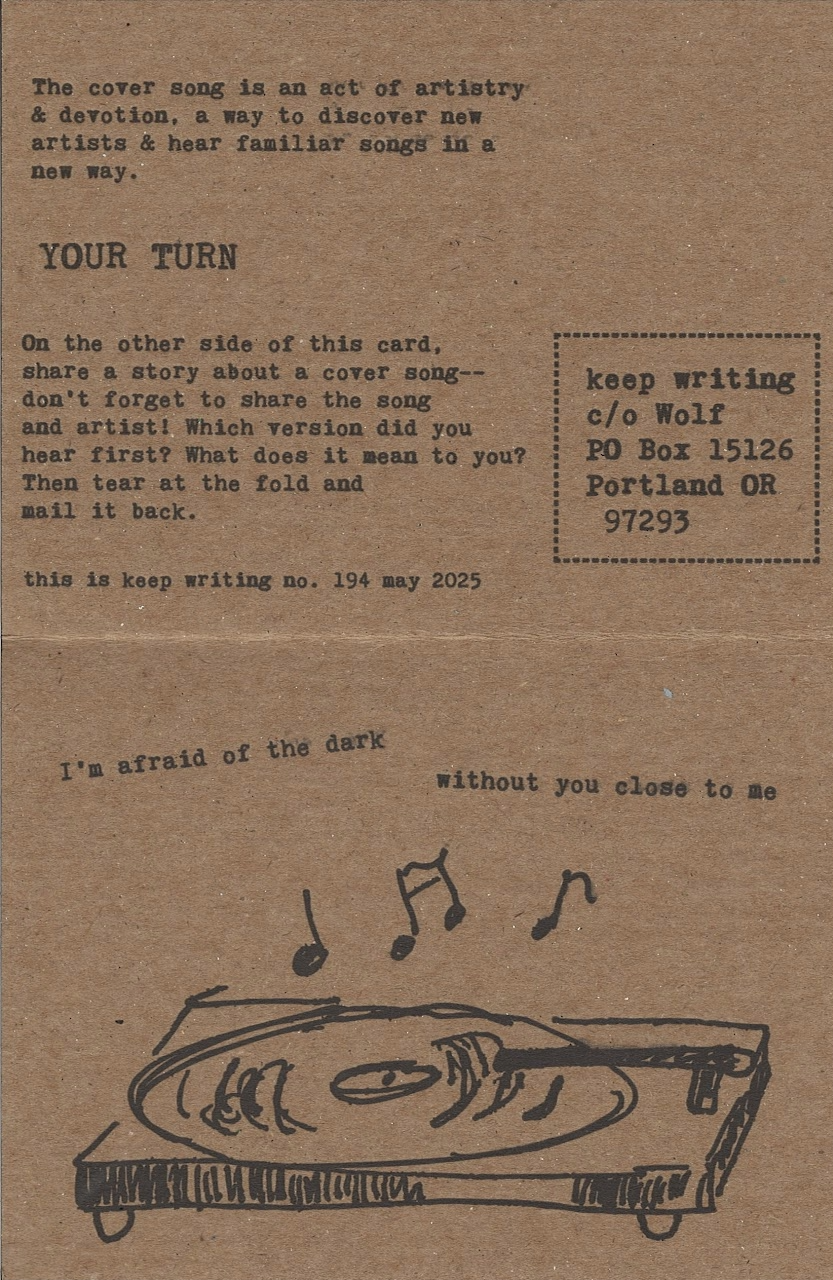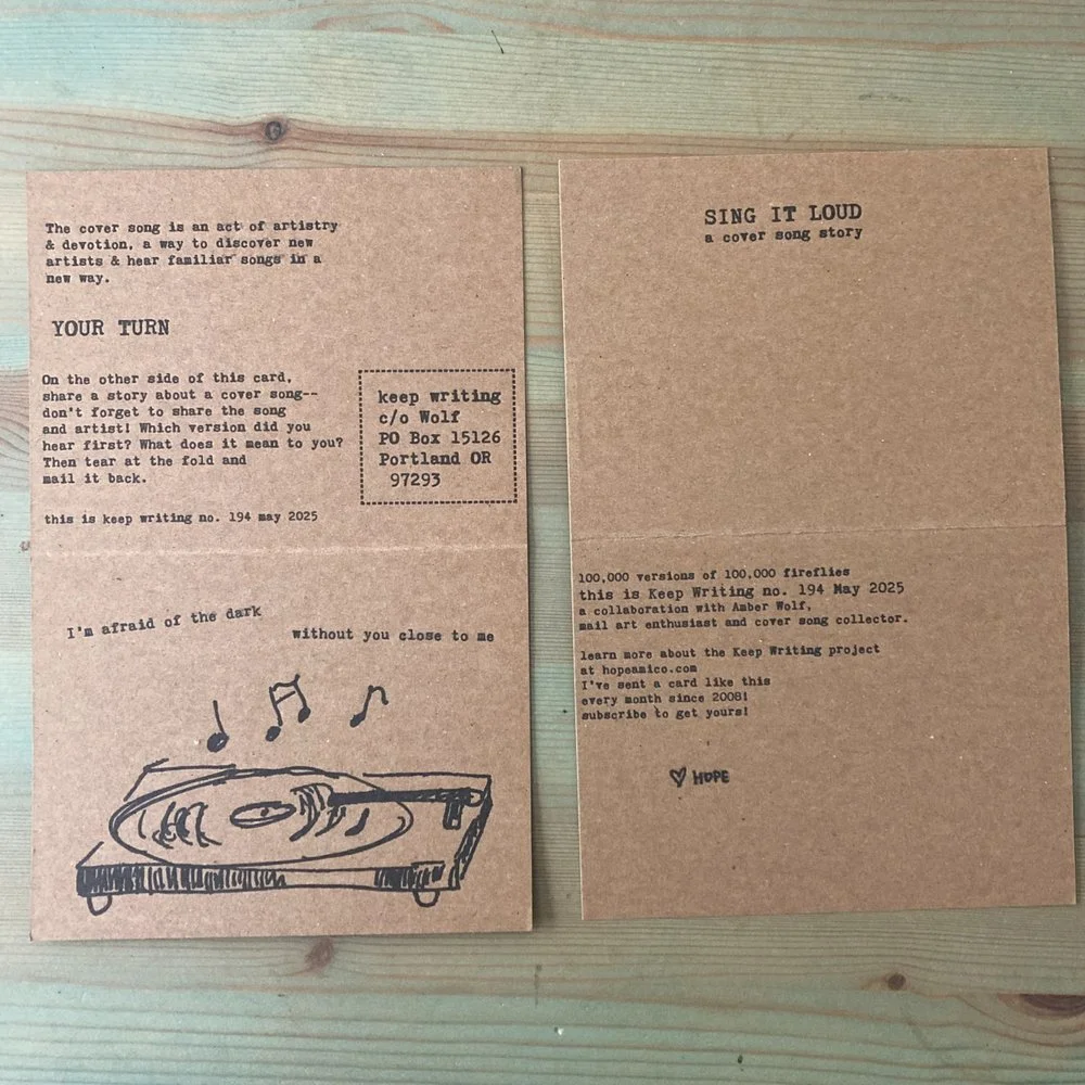 Amber Wolf is a champion of mail. Of course I wanted to collaborate with her. When she posed her question—an idea for a cover song and a story attached to it— I had immediately shared one story. Then another. And another.