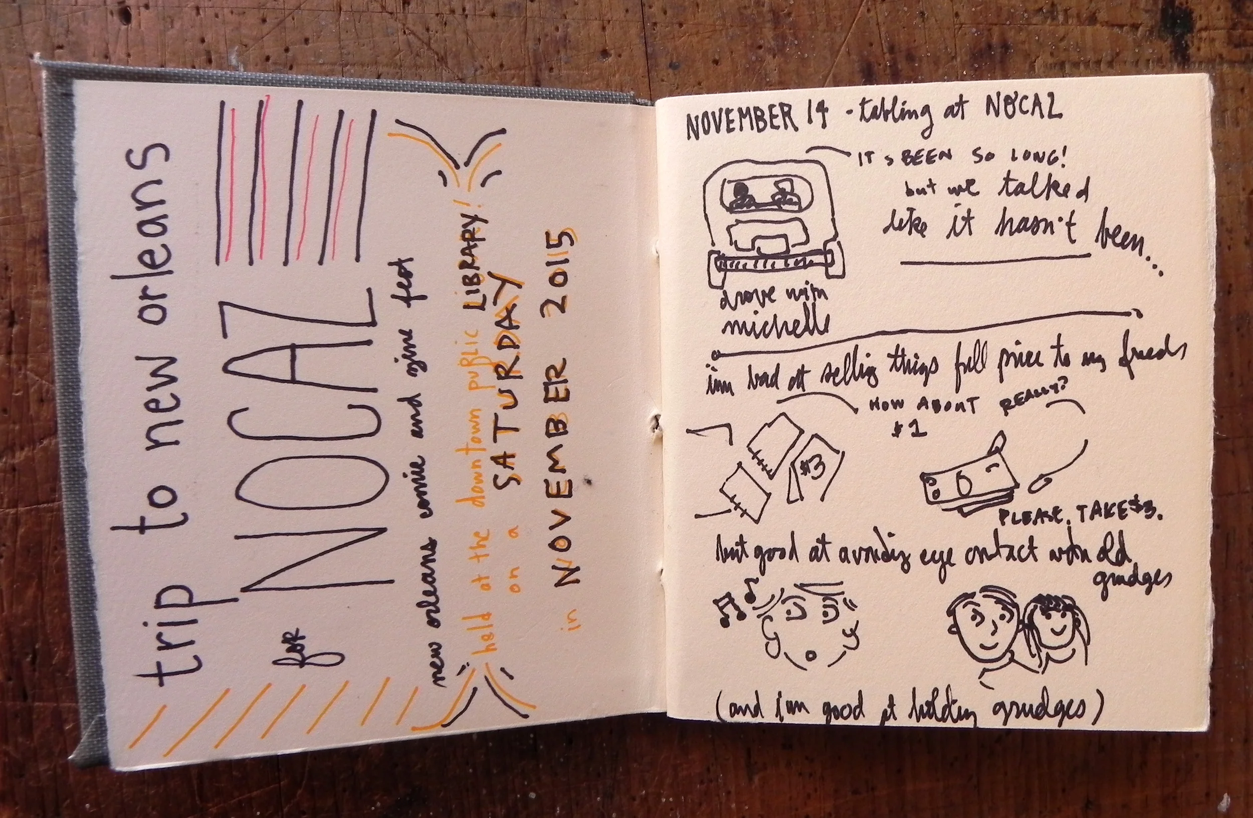 Every year, I return to New Orleans with the pretense of tabling at the Bookfair but really i want to visit my friends. This year, the bookfair was moved to December so I signed up for NOCAZ--the New Orleans Comic and Zine Fest, on November 14th.