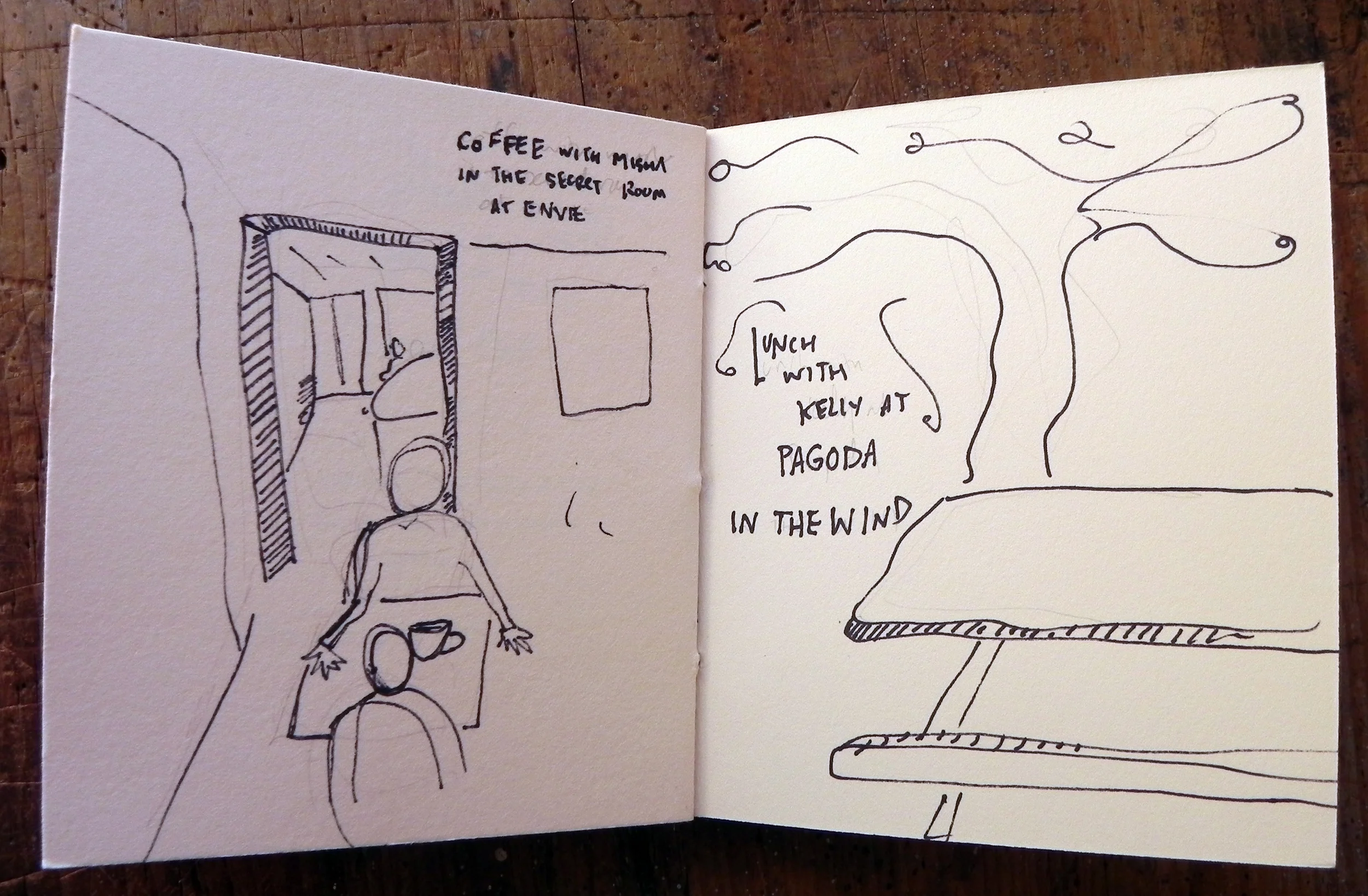 Visits are always a whirlwind but I carried a small notebook with me and sketched bits about my visit while it was happening.